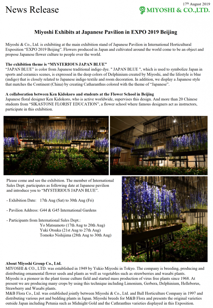 Deprecated: The behavior of unparenthesized expressions containing both '.' and '+'/'-' will change in PHP 8: '+'/'-' will take a higher precedence in /home/haemoridemo/www/miyosi/wp-content/plugins/booking-package/index.php on line 3089 【News Release】Miyoshi Exhibits at Japanese Pavilion in EXPO 2019 Beijing | 株式会社ミヨシ
